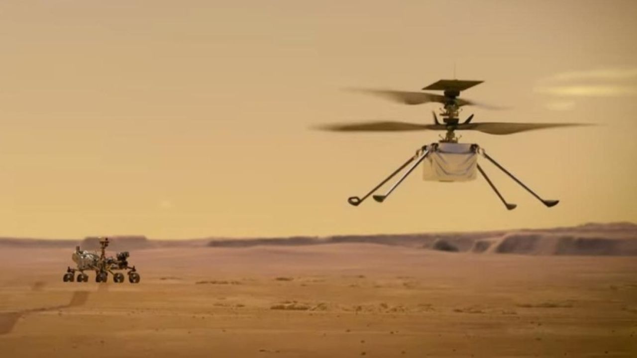 Helikopter 18 Şubat 2021'de Kızıl Gezegen'deki Jezero kraterine iniş yapan Perseverance uzay aracına bağlı olarak deneme uçuşlarını gerçekleştiriyor.