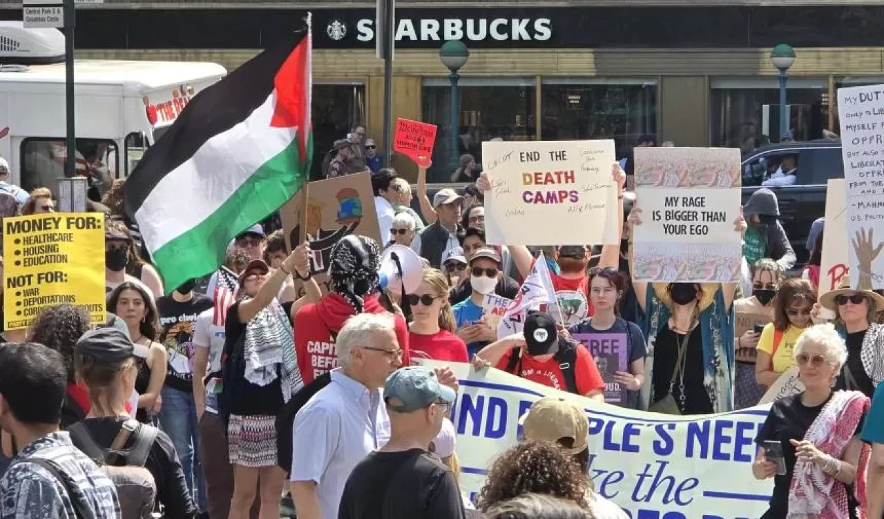 ABD’de Başkan Donald Trump ve yönetimi politikaları nedeniyle tepki görüyor. Trump ve Hükümet Verimliliği Departmanı'nın (DOGE) başındaki Elon Musk’ın göçmen politikalarına, federal çalışanların işten çıkarılmasına ve öğrencilere yönelik baskılarına tepki gösteren binlerce kişi New York şehrinde bir araya geldi. Bryant Park’tan başlayan ve Central Park Columbus Meydanı’nda sona eren protesto gösterisinde "Trump Kral Değil", "Elon Musk İstifa", "Özgür Filistin" gibi sloganlar atan binlerce kişi gözaltına alınan Mahmoud Khalil ve Rümeysa Öztürk için de özgürlük çağrısı yaptı. "Rümeysa’ya Özgürlük", "Mahmoud Khalil’e Özgürlük" yazılı pankartlar taşıyan protestocular, öğrencilerin serbest bırakılmasını istedi.