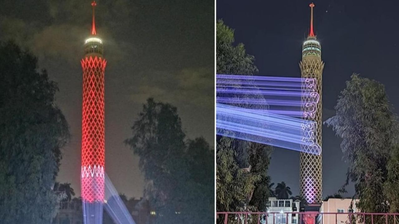 Haberde Katar'ın Kahire Büyükelçiliği'nin resmi "Twitter" hesabından bayrağın kuleye yansıtıldığı ana dair videonun paylaşıldığı kaydedildi.