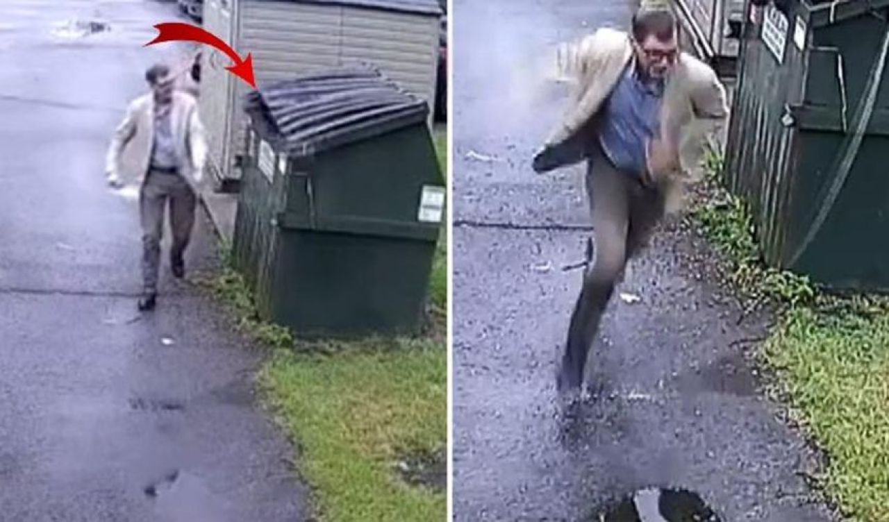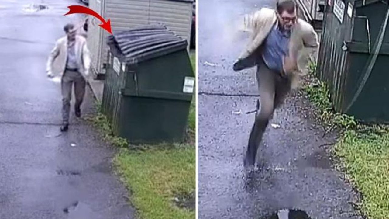 Görüntülerde, kilidin açılmasıyla siyah bir ayının aniden konteynerden dışarıya atladığı görüldü. Ayıyla göz göze gelen Marsh, konteynerin yanından panikle koşarak uzaklaştı.