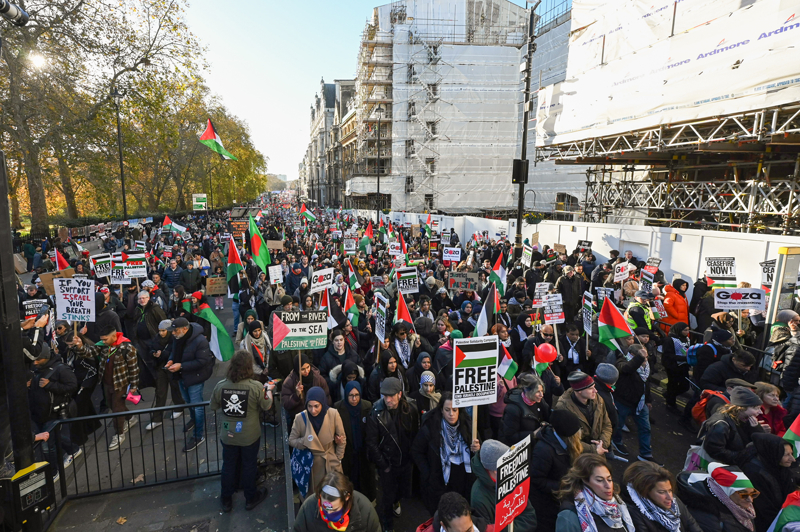 Kentin simge mekanlarından Hyde Park önünde toplanan vatandaşlar, çatışmalara verilen insani aranın, kalıcı ateşkese dönmesi talebiyle parlamento binasına yürüdü.