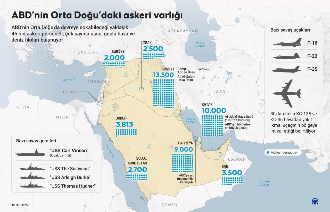İran, ABD-İsrail'in saldırılarına karşılık İsrail'in yanı sıra bölge ülkelerindeki ABD üsleri ve hedeflerine füze ve insansız hava araçlarıyla saldırılar düzenlemişti.