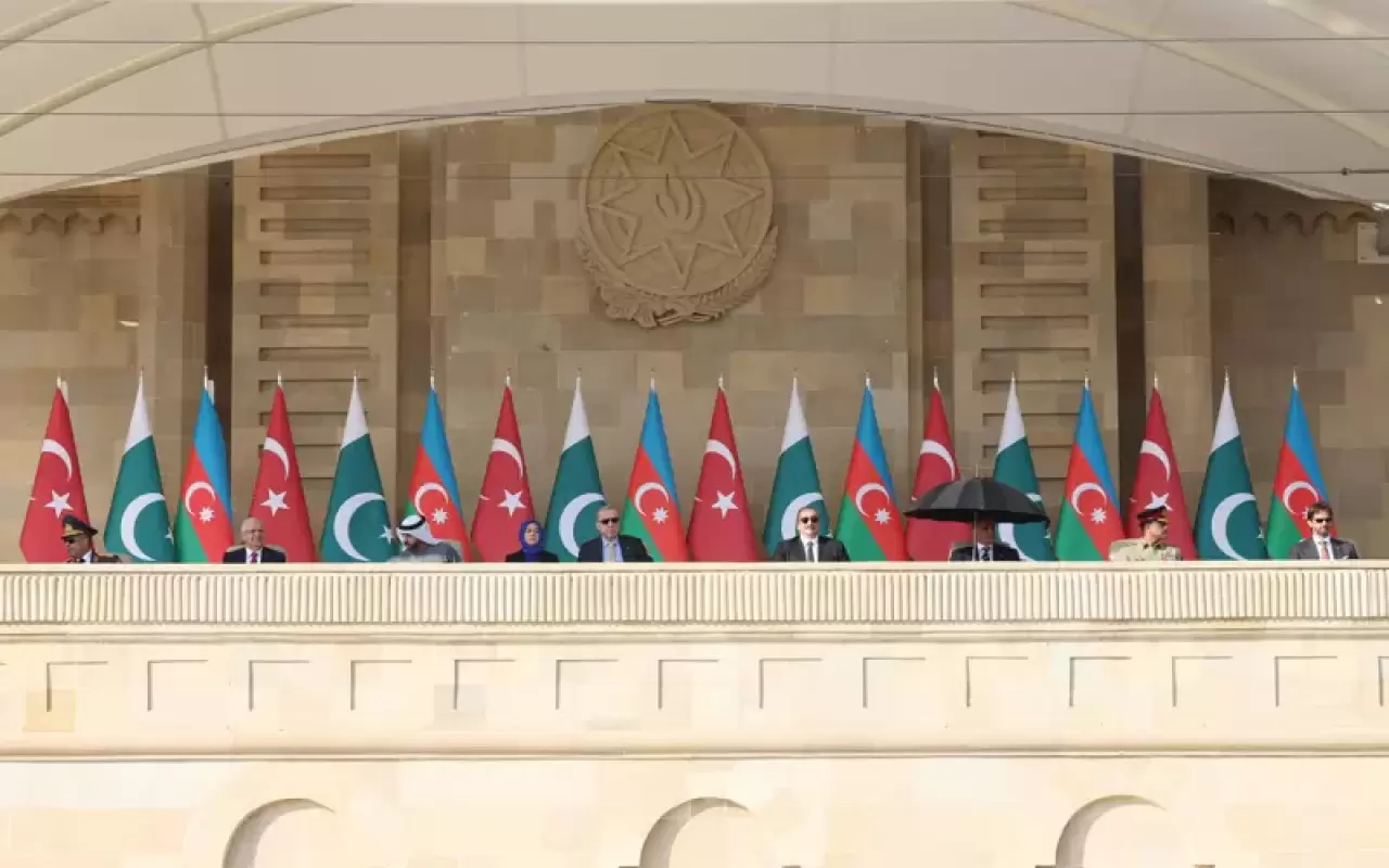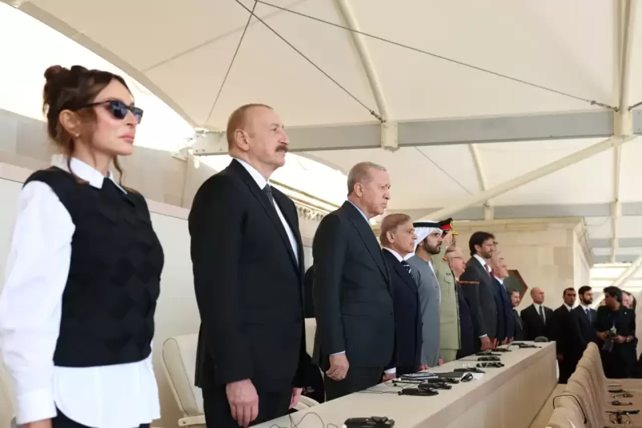 Pakistan Başbakanı Şahbaz Şerif, 2. Karabağ Savaşı'nda elde edilen zaferin 5. yıl dönümü dolayısıyla Azerbaycan'ın başkenti Bakü'de düzenlenen askeri geçit töreninde konuştu.