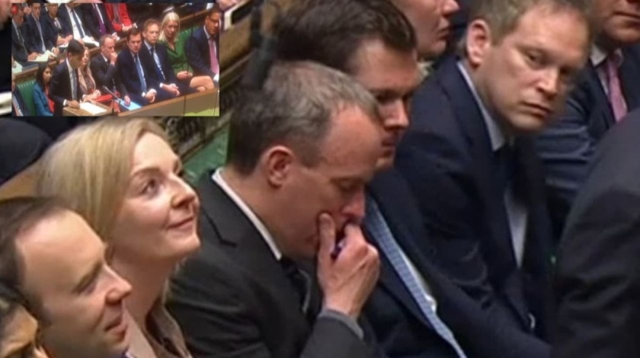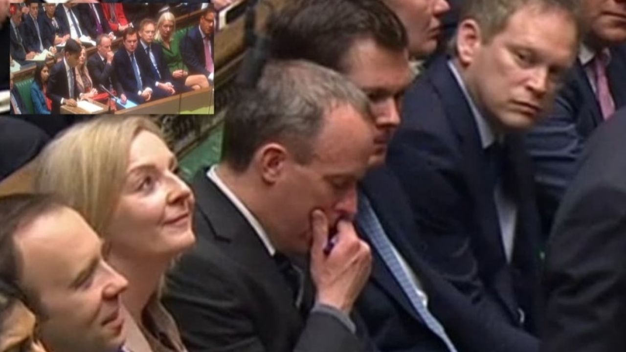 Ulaştırma Dışişleri Bakanı Grant Shapps, devam eden küresel koronavirüs salgını konusundaki endişe nedeniyle bilinen en iyi yöntemlerin salon ve içeridekilere uygulanmasına rağmen, gözlerini Raab'ın üzerinden alamadı.