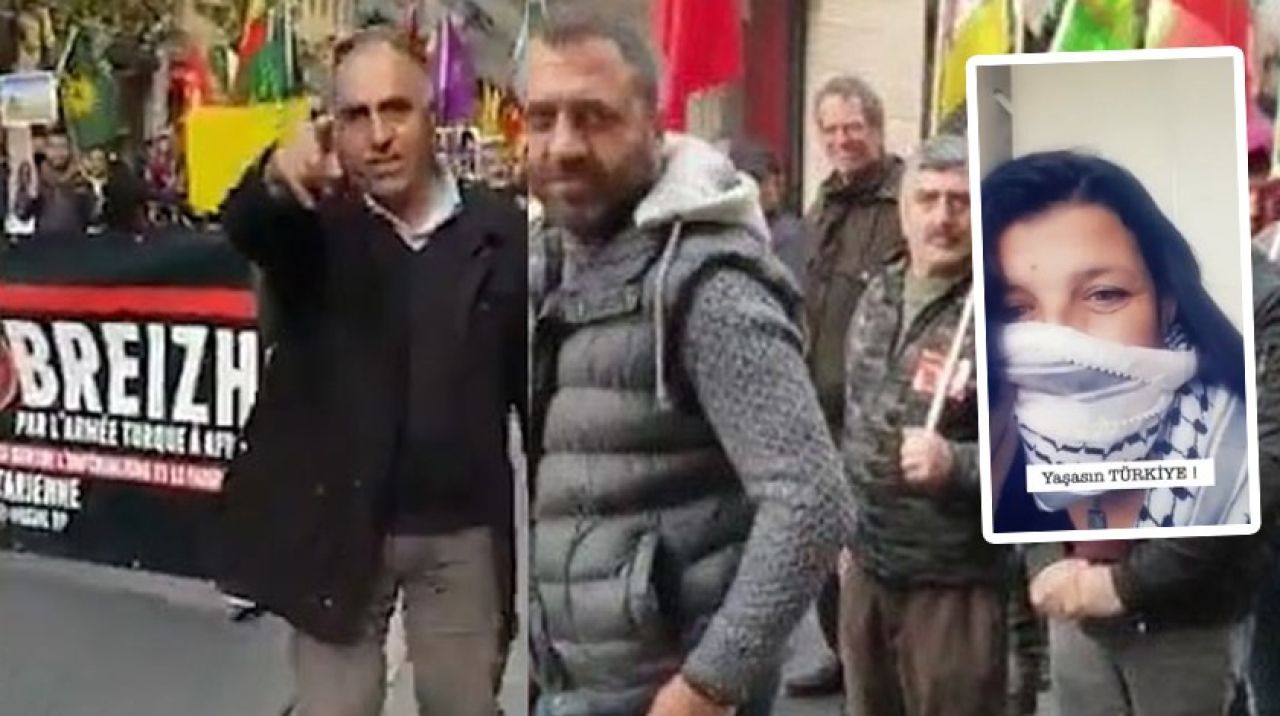 Fransız kadın terör örgütü yandaşlarının yanına yaklaşarak 'PKK teröristtir' deyip daha sonra 'Ne mutlu Türküm diyene' diye bağırdı.