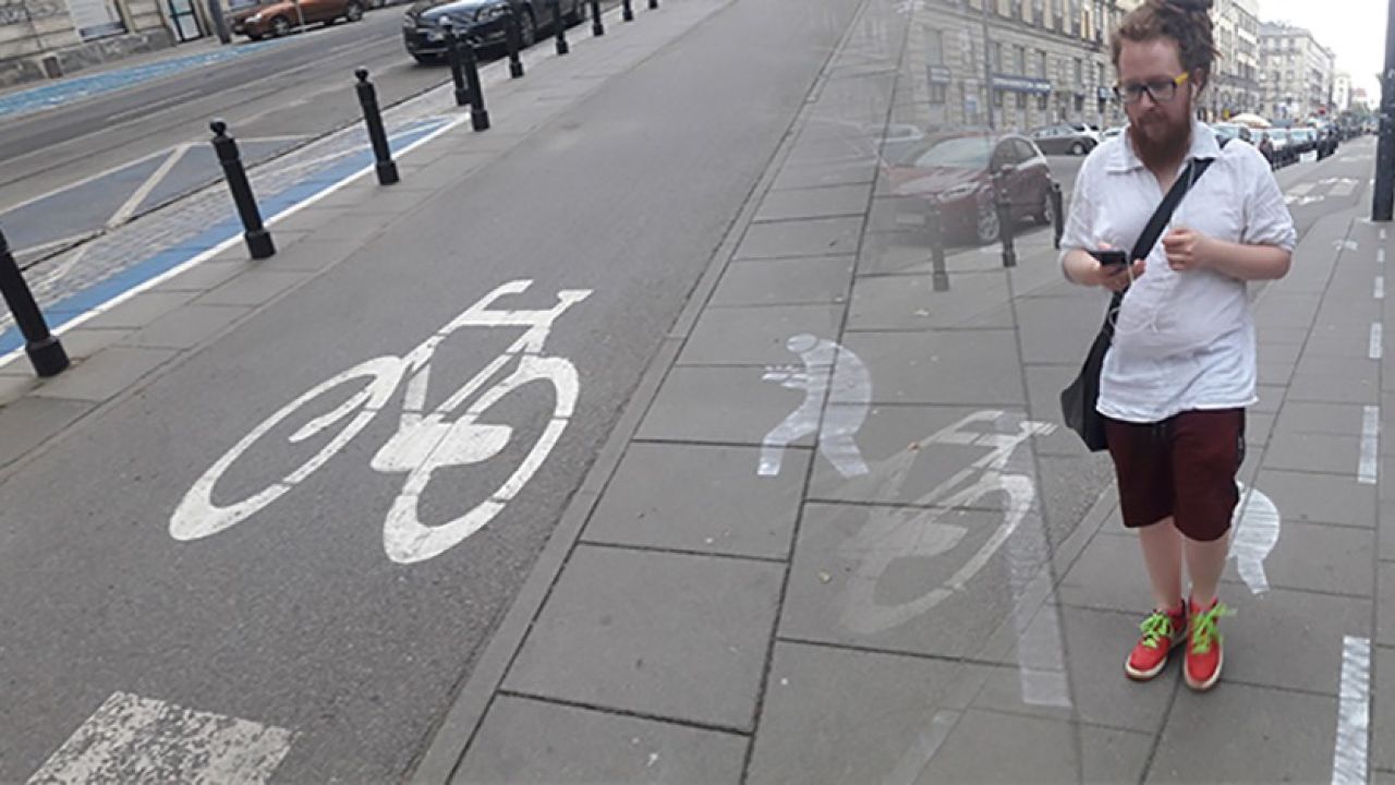 Varşova Teknik Üniversitesinin bulunduğu Nowowiejska Sokağı'nda öğrencilerden kaynaklanan yoğun yaya trafiği, onların vazgeçilmezi akıllı telefonla birleşince kaldırımda rahat yürüyemeyen çevre sakinleri belediyenin bisiklet yolunun yanına kendi inisiyatifleriyle akıllı telefon yolu yaptı.