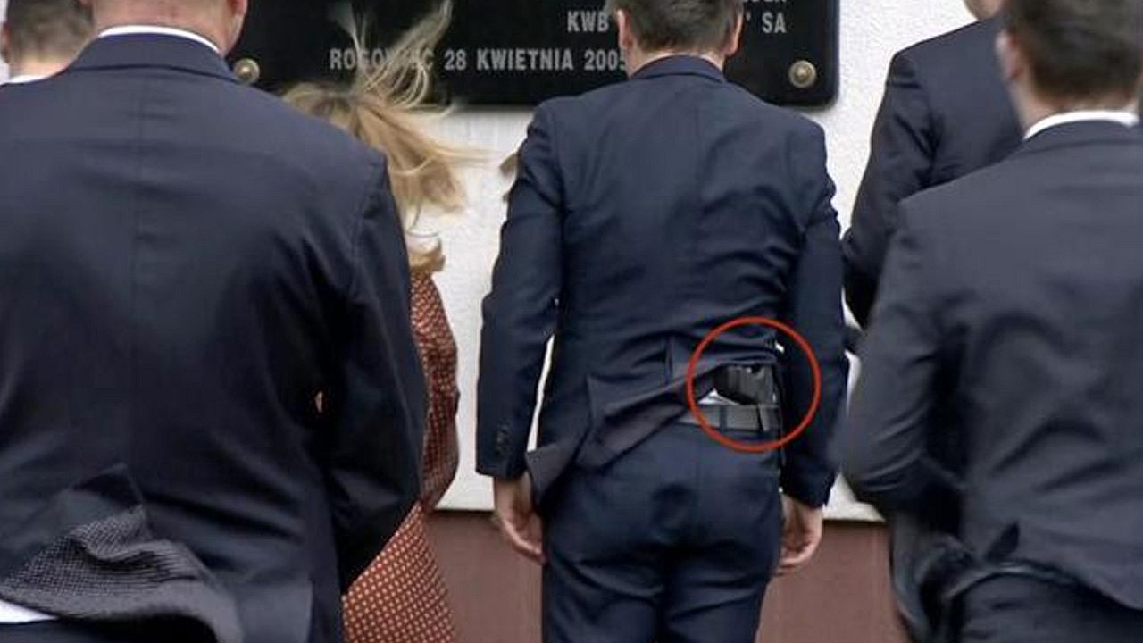 Polonya'daki bir maden kazasında ölenler anısına yapılan anıta çelenk koyan Ziobro'nun ceketinin rüzgardan kalkmasıyla belindeki Glock marka silah görüntülere yansıdı.