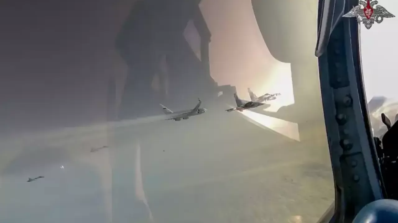 Rusya Savunma Bakanlığının yayınladığı videoya göre, Putin'in içerisinde bulunduğu İL-96 model devlet başkanlığı uçağına eşlik etmek üzere savaş uçakları da kalkış yaptı.