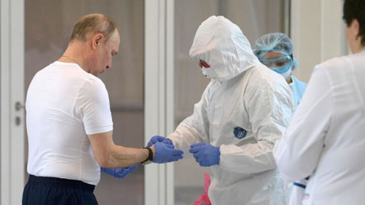 Vaka sayısının 495'i bulduğu Rusya'dan bugün ilk bakışta dünyayı şaşkına çeviren bir fotoğraf geldi. Rusya lideri Vladimir Putin'in baştan ayağa sarı renkli özel koruma elbisesi giymiş ve maske takmış fotoğrafı, Rus medyası tarafından servis edildi.