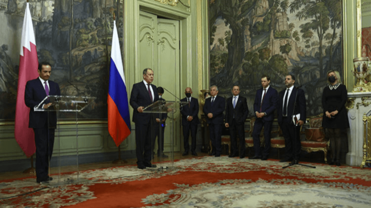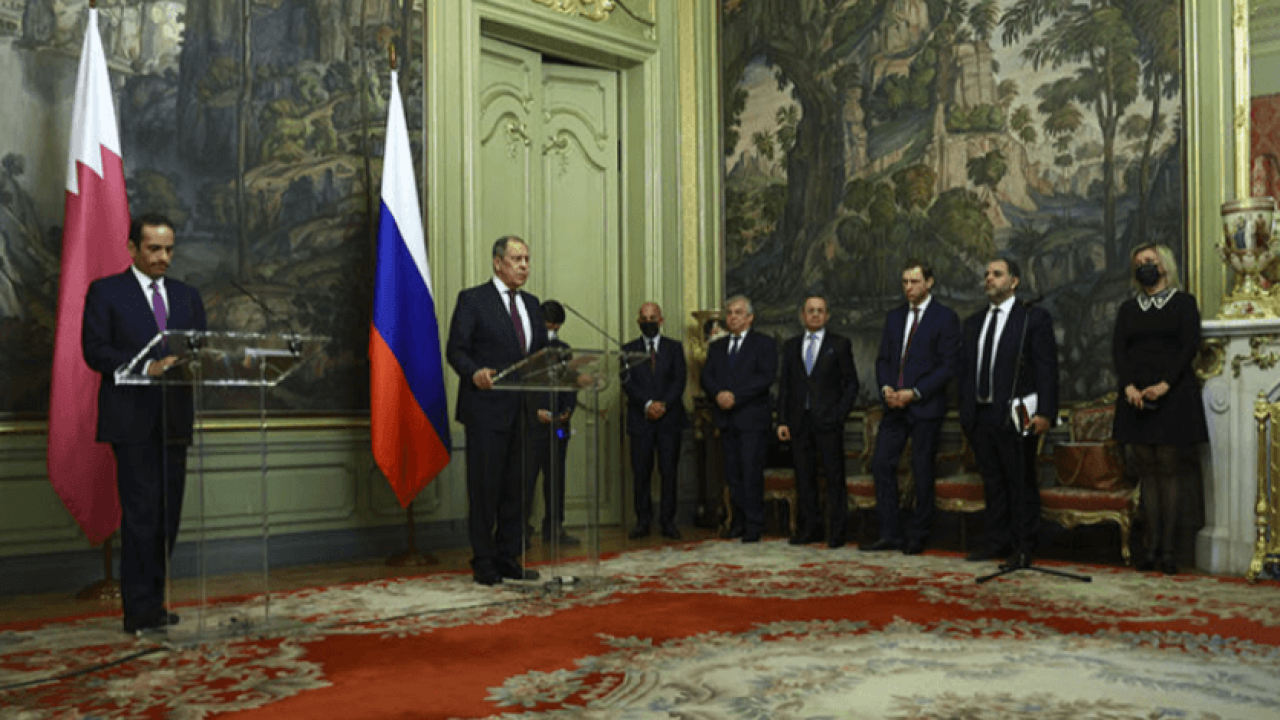 Lavrov ile Katar Dışişleri Bakanı Muhammed Bin Abdurrahman Al Sani, başkent Moskova'daki görüşmelerinin ardından basın toplantısı düzenledi.