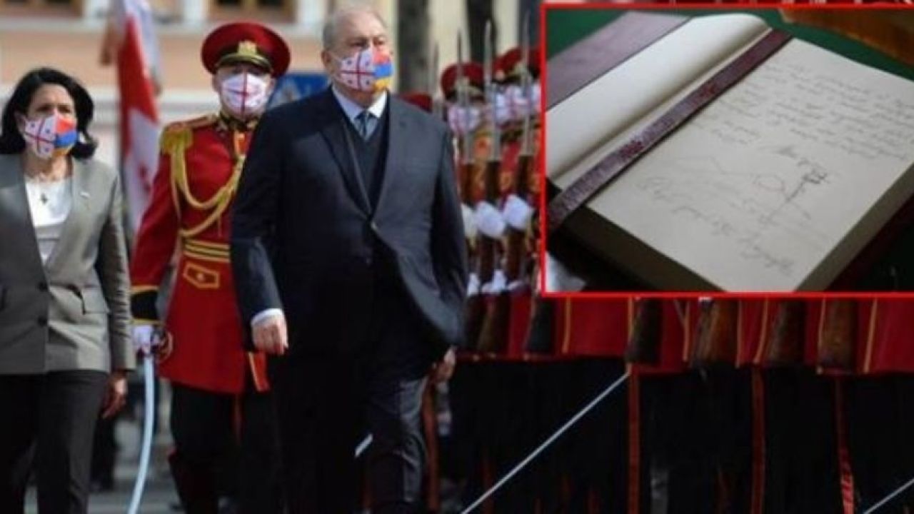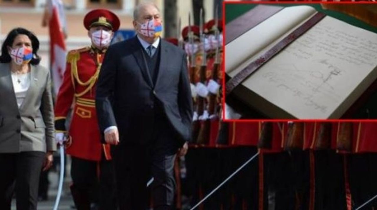 Ermenistan Cumhurbaşkanı Armen Sarkisyan, Gürcistan Cumhurbaşkanı Salome Zurabişvili’nin davetiyle geçtiğimiz günlerde başkent Tiflis’i ziyaret etti. İkili görüşmelerin ardından Devlet Başkanlığı konutunda şeref defterine notlar düşen Sarkisyan, şu ifadeleri kullandı: "Cumhurbaşkanı Salome Zurabişvili'nin Gürcistan'ı ziyaret etme davetinden içtenlikle memnuniyet duyduğumu söylemek isterim. Bu ziyaretin Ermeni ve Gürcü halkları arasındaki ilişkileri güçlendireceğine ve gelecek nesillerin yararına olacağına eminim."