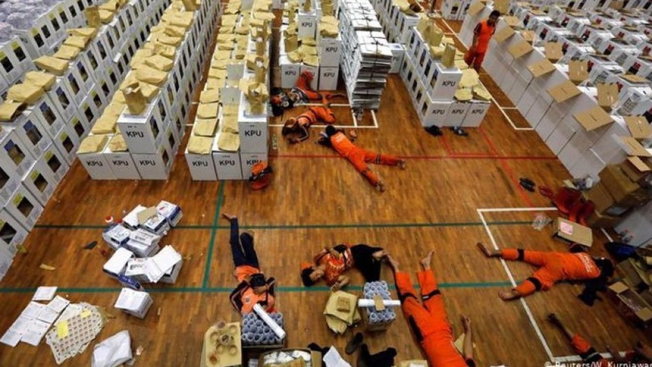 Alman basın organı Deutsche Welle'de (DW) yer alan habere göre 17 Nisan'da 260 milyon nüfuslu ülkede ilk kez devlet başkanlığı, yerel ve ulusal parlamento seçimleri, masrafları kısmak amacıyla aynı gün yapılmıştı. 193 milyon seçmenin yaklaşık yüzde 80'inin 800 binin üzerindeki seçim lokalinde oy kullandığı seçimlerde, her seçmenin beş oy pusulası doldurması gerekiyordu. Doğudan batıya beş bin kilometreden daha fazla uzunluğa sahip olan ülkede sekiz saat içinde bu kadar oyun kullanılmasının ve ardından oy pusulalarının elle sayılmasının, sandık görevlilerinin aşırı yorgunluğuna ve ölümlerine neden olduğu bildirildi.