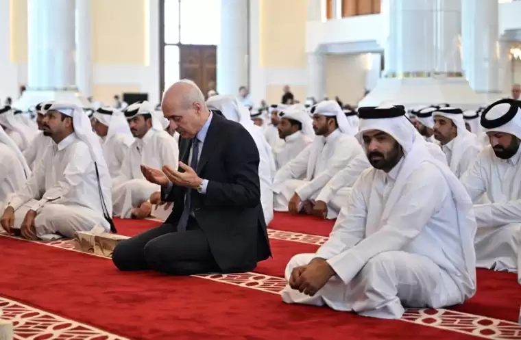 Dünya Müslüman Alimler Birliği Genel Başkanı Ali Muhyiddin el-Karadaği'nin kıldırdığı cenaze namazına Katar Emiri Şeyh Temim bin Hamed Al Sani'nin yanı sıra TBMM Başkanı Numan Kurtulmuş, Cumhurbaşkanı Yardımcısı Cevdet Yılmaz, Dışişleri Bakanı Hakan Fidan, MİT Başkanı İbrahim Kalın, siyasi partilerden temsilciler ve milletvekilleri de katıldı.