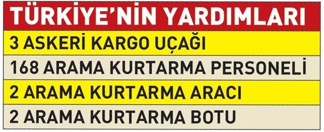 Türk Hava Kuvvetleri'ne ait uçaklarla AFAD'ın arama-kurtarma ekipleri ve yardım malzemelerinin nakli gerçekleştirildi. İlk etapta 3 askeri kargo uçağı Libya'ya gönderildi. 168 arama kurtarma personeli, 2 arama kurtarma aracı ve 2 arama kurtarma botu da Libya'da insani yardım görevinde. Türkiye'nin Trablus Büyükelçisi Kenan Yılmaz, Türk Dışişleri Bakanlığı yetkilileri ve insani yardım personeli gönderilen malzemelerin ihtiyaç sahiplerine ulaştırılmasını gözetmek üzere afet bölgesine geçti.