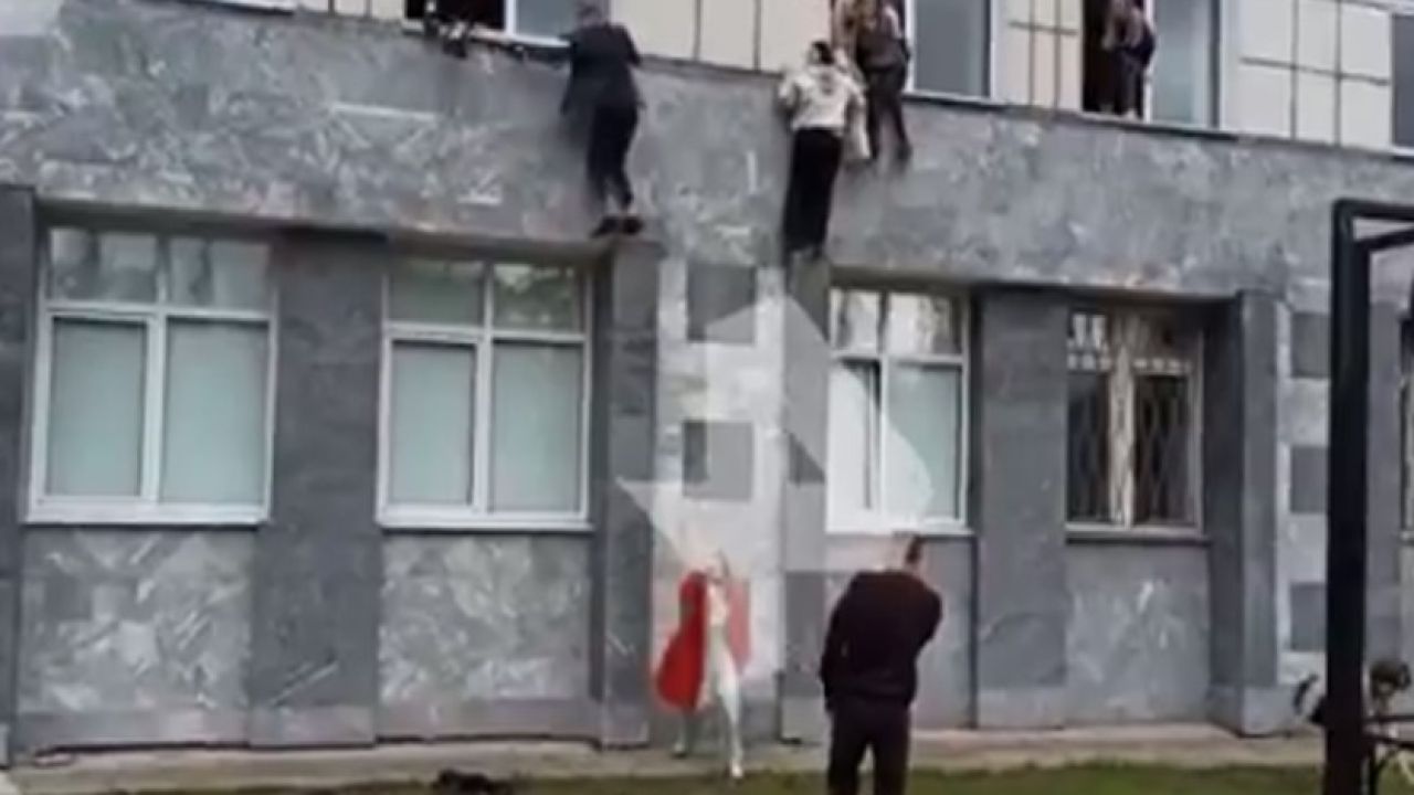 Sosyal medyada yayınlanan görüntülerde öğrencilerin camlardan atlayarak kaçtığı görüldü.