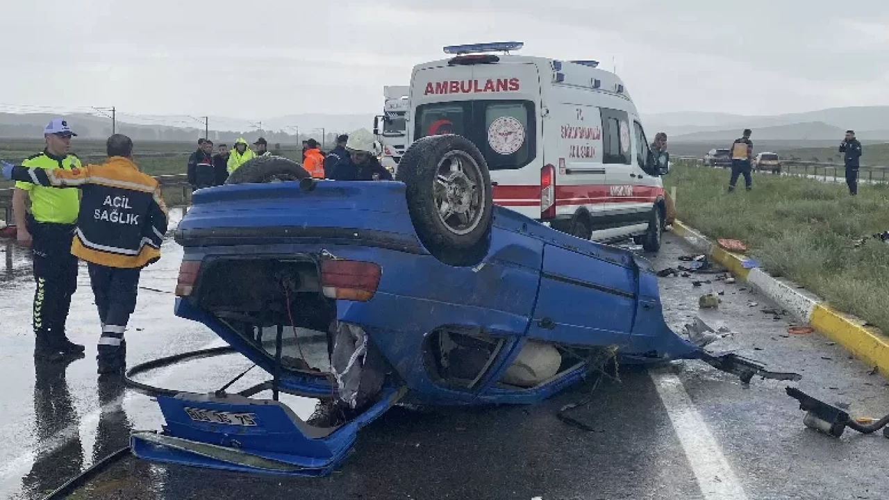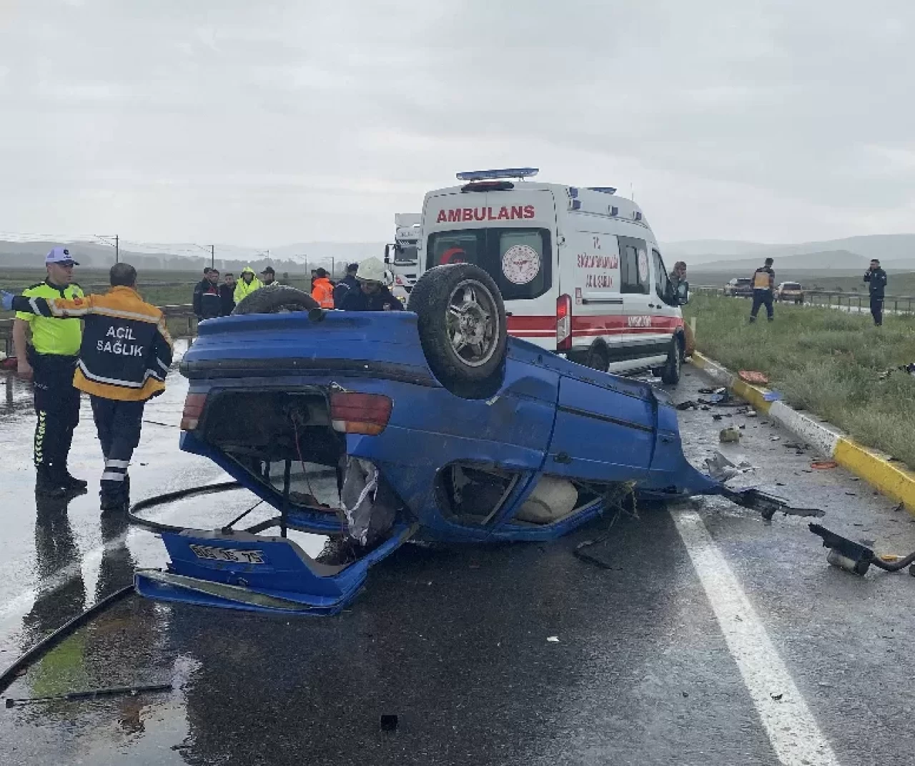 Çarpışmanın etkisiyle 54 SC 518 plakalı otomobil devrildi.