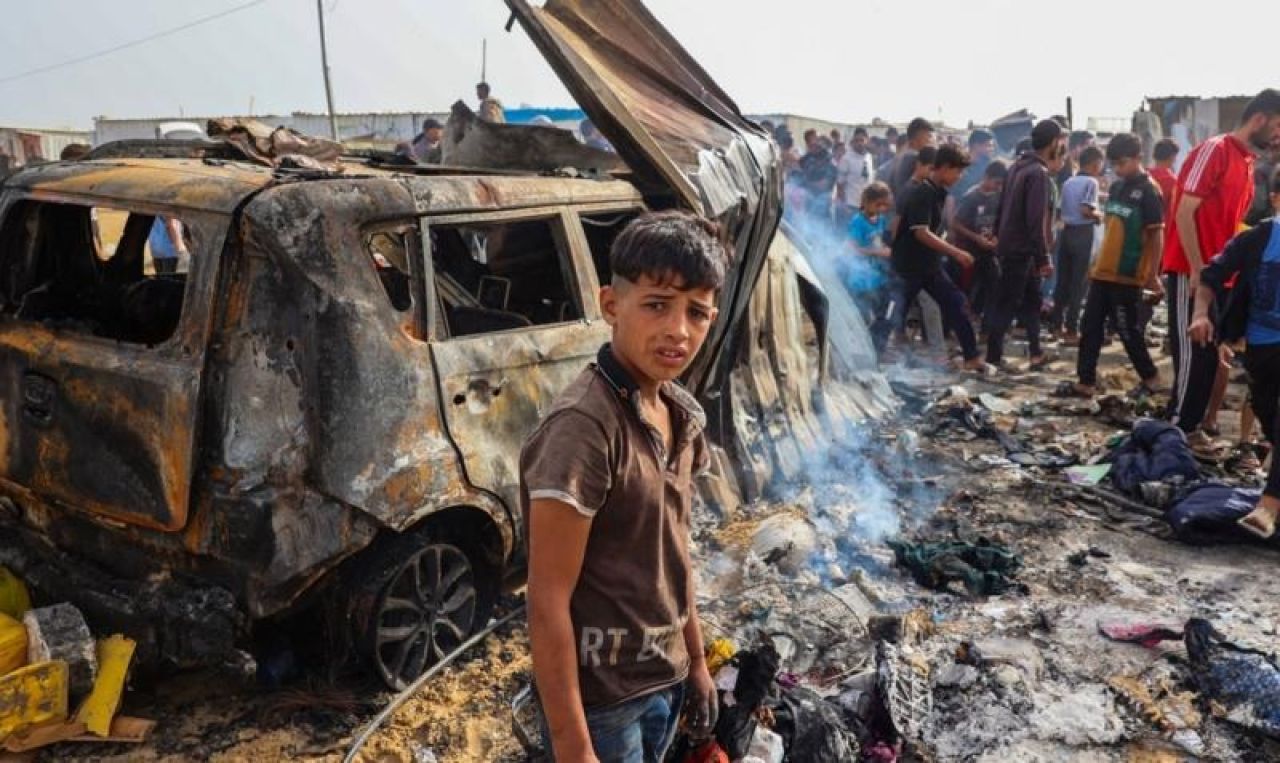 İsrail'in Gazze Şeridi'ne yönelik saldırıları 235 gündür şiddetini artırarak devam ediyor. İsrail savaş uçakları, Refah'ın kuzeybatısında Birleşmiş Milletler Filistinli Mültecilere Yardım ve Bayındırlık Ajansı depolarının bulunduğu bölgenin yakınında yerinden edilmiş Filistinlilerin çadırlarını bombaladı. Saldırıda kadın ve çocukların da bulunduğu en az 45 Filistinli hayatını kaybetti. İnsanların diri diri yanarak can verdiği korkunç olay hakkında konuşan İsrail Başbakanı Netanyahu, saldırı için "Trajik hata" ifadelerini kullandı. O skandal ifadelerin ardından İsrail'in savunması ise "Pes" dedirtti.