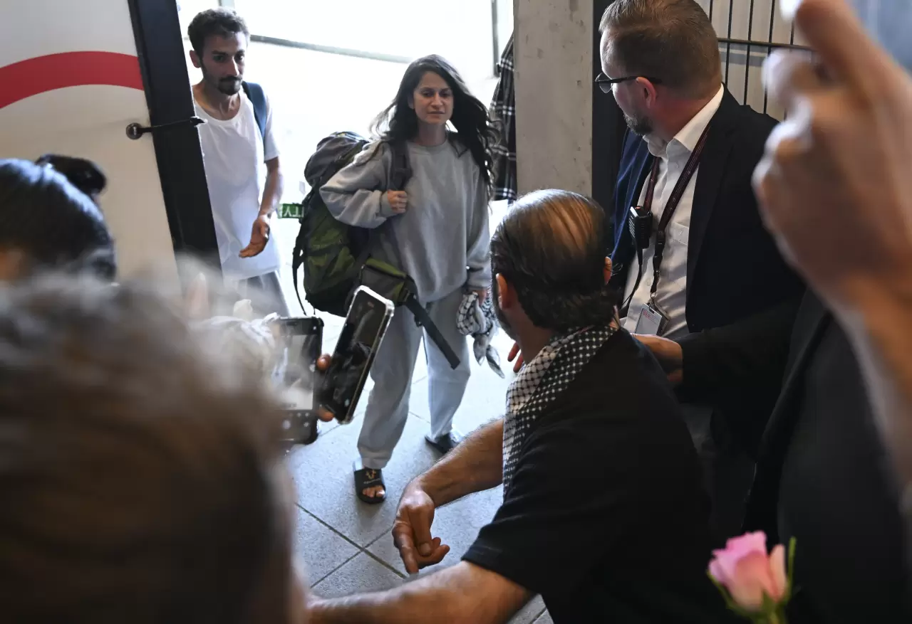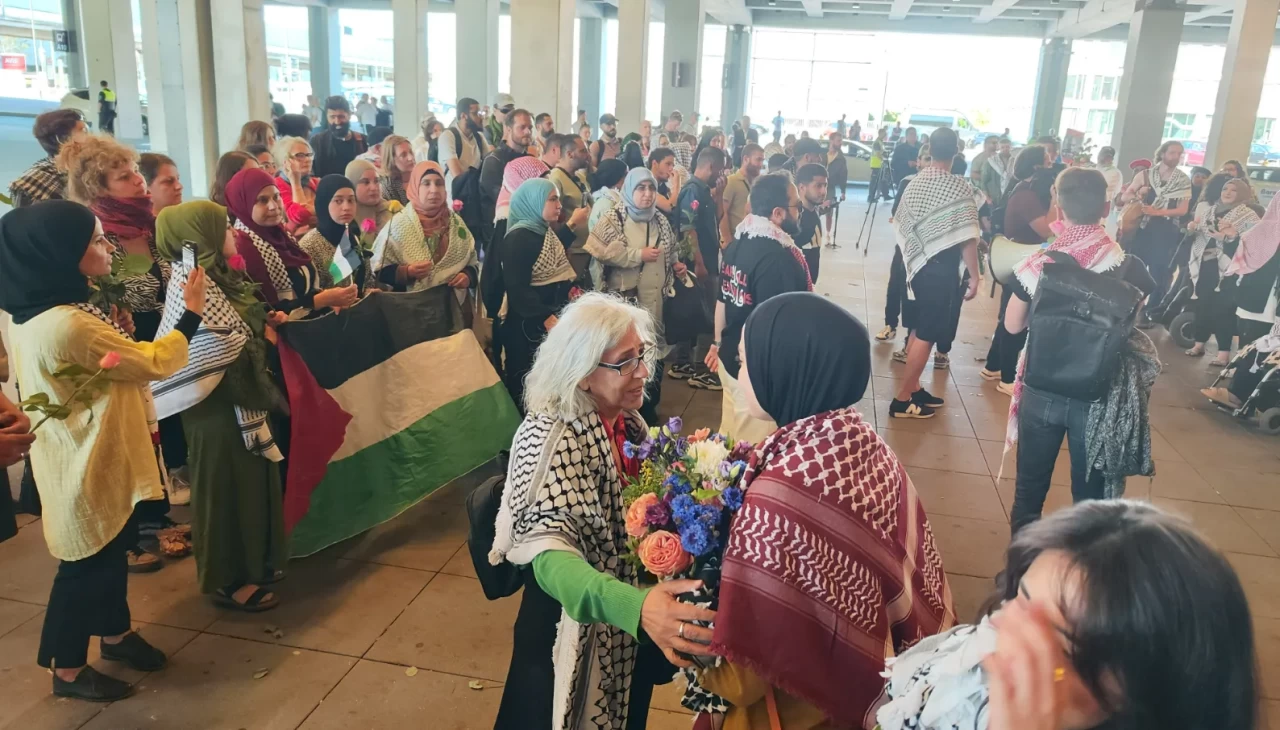 İsrail'in Gazze Şeridi'ne insani yardım götürdüğü sırada uluslararası sularda el koyduğu Madleen gemisindeki 12 aktivist arasında bulunan Türk aktivistler Yasemin Acar ve Şuayb Ordu, İsrail'den sınır dışı edilmelerinin ardından Almanya'nın başkenti Berlin'e geldi.