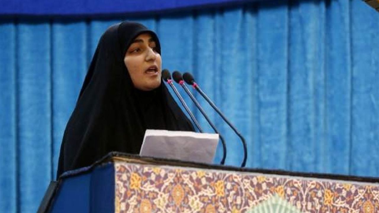 Öldürülen Kudüs Gücü eski Komutanı General Kasım Süleymani'nin kızı Zeynep Süleymani, Kirman (Kermân) şehrinde Cuma namazı sırasında kürsüye silahla çıkarak, ABD'ye mesaj gönderdi.