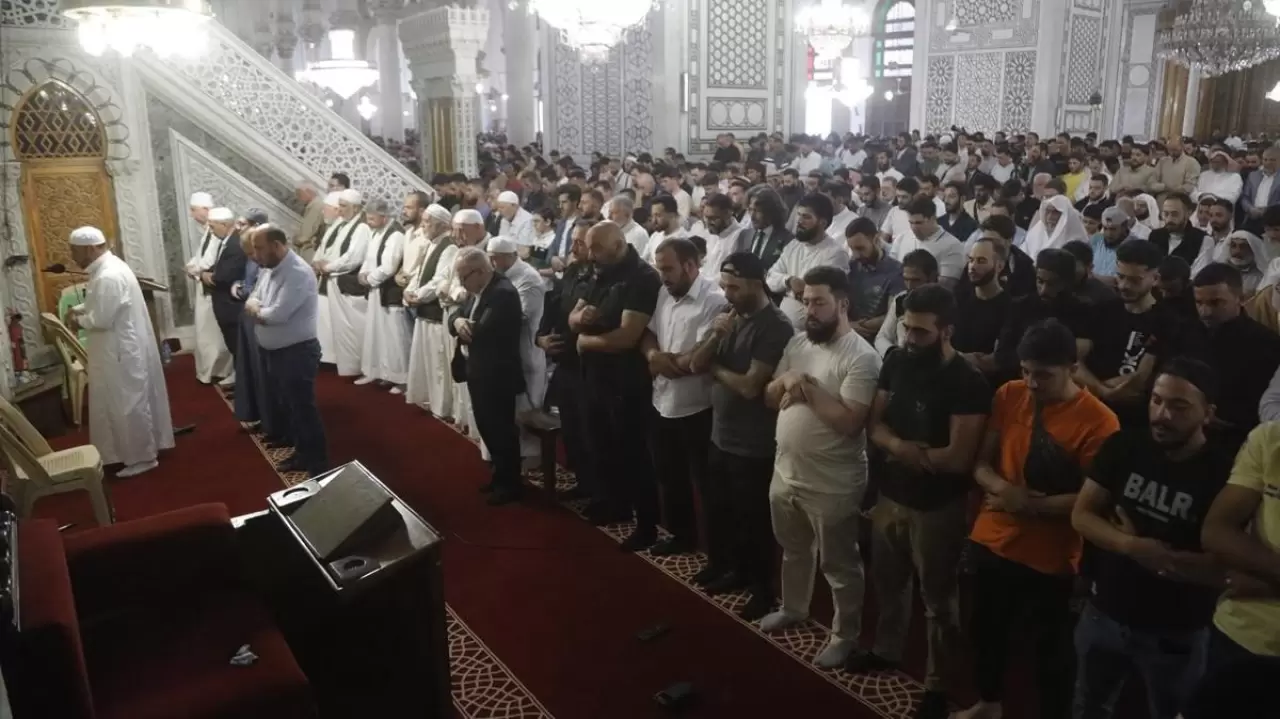 Başkent Şam'daki tarihi öneme sahip Emevi Camisi'ne bayram namazı için binlerce kişi akın etti.