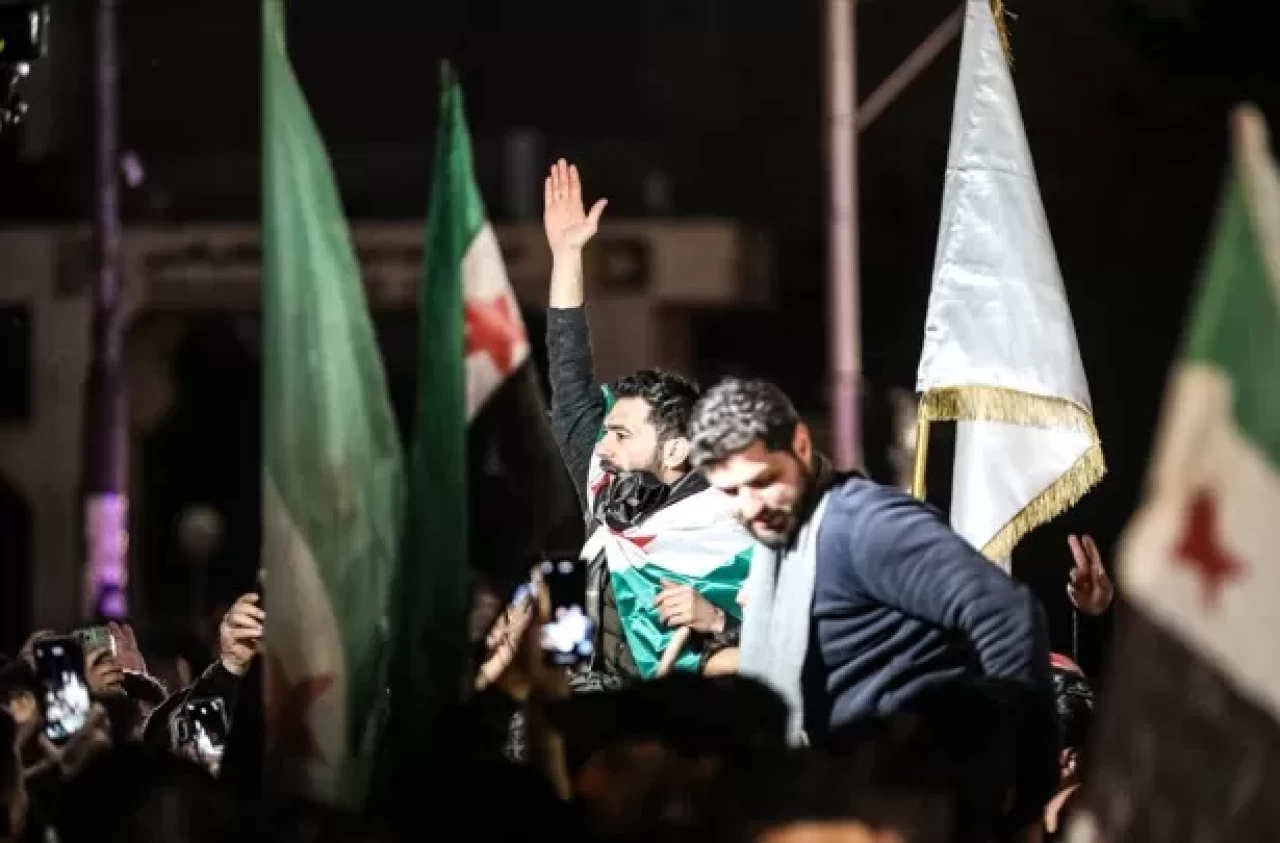 Başkent Şam'da Emevi Meydanı'nda toplanan göstericiler, devrik rejim güçlerinin Suriye ordusuna düzenlediği saldırıyı protesto etti.