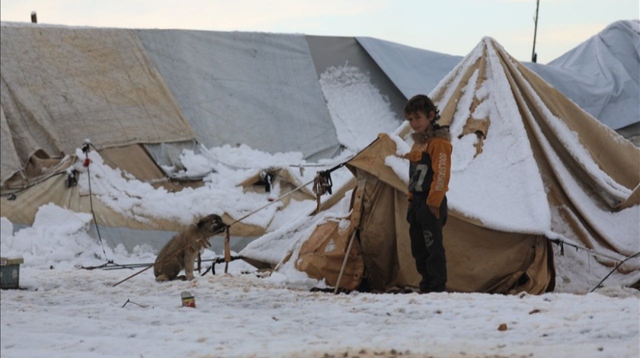 Suriye’nin kuzeyindeki kamplarda etkili olan kar yağışıyla çetin bir sınav veren siviller, soğuk havaya ve imkansızlıklara rağmen yaralarını sarmaya çalışıyor.