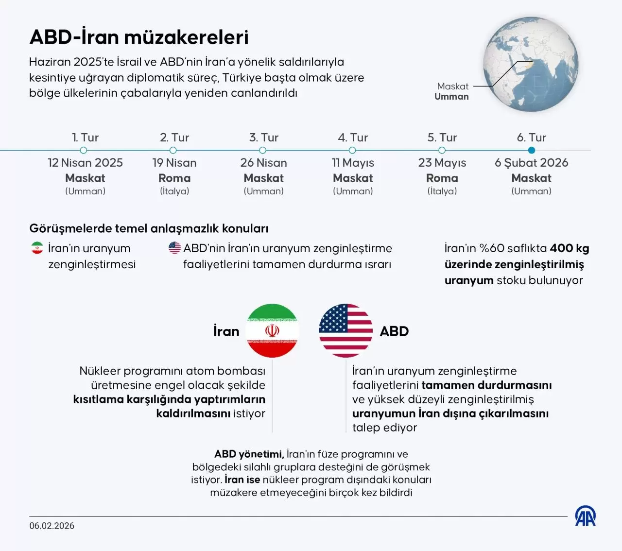 İran ile ABD arasındaki nükleer müzakereler, Tahran-Washington hattında tansiyonun yeniden yükseldiği ve Washington’un Tahran'a karşı bölgede askeri yığınağını artırdığı hassas bir dönemde gerçekleşiyor. Haziran 2025'te İsrail ve ABD’nin İran’a yönelik saldırılarıyla kesintiye uğrayan diplomatik süreç, Türkiye başta olmak üzere bölge ülkelerinin yoğun çabalarıyla yeniden canlandırıldı.