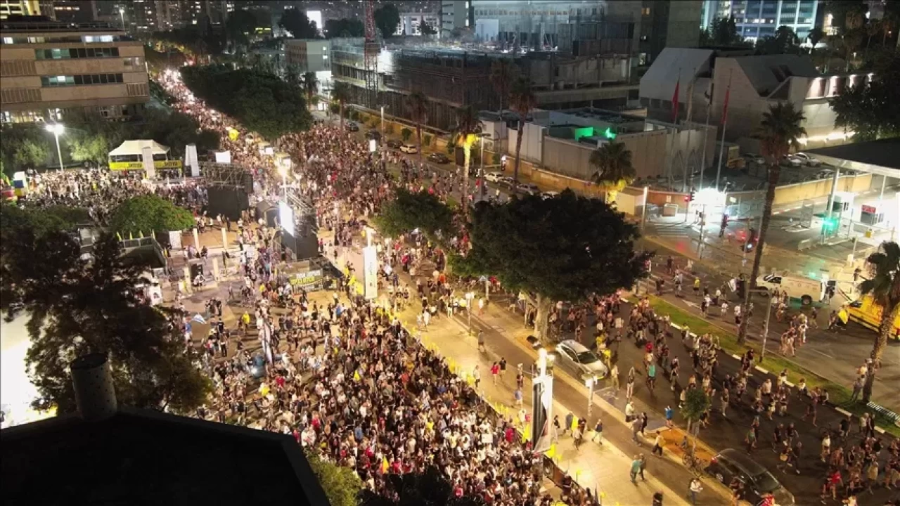 Başkent Tel Aviv'deki sembolik Habima Meydanı'nda toplanan yaklaşık 2 bin gösterici, "Soykırımı durdurun", "Gazze'den Cenin'e çocukları öldürmeyin", "Açlık savaş suçu bunu engelleyin" yazılı pankartlar taşıdı.