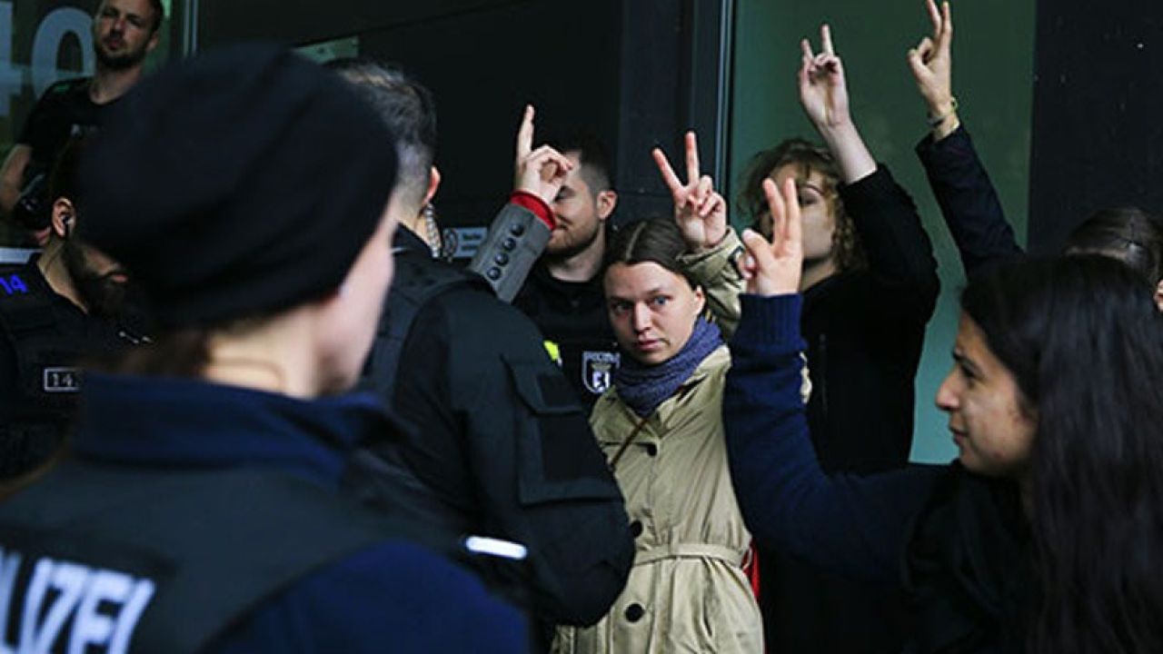 İzinsiz gerçekleşen eylem için çağrılan Alman polisinin ise terör örgütü yandaşlarına müdahale etmek yerine, sadece izlemesi dikkatlerden kaçmadı.