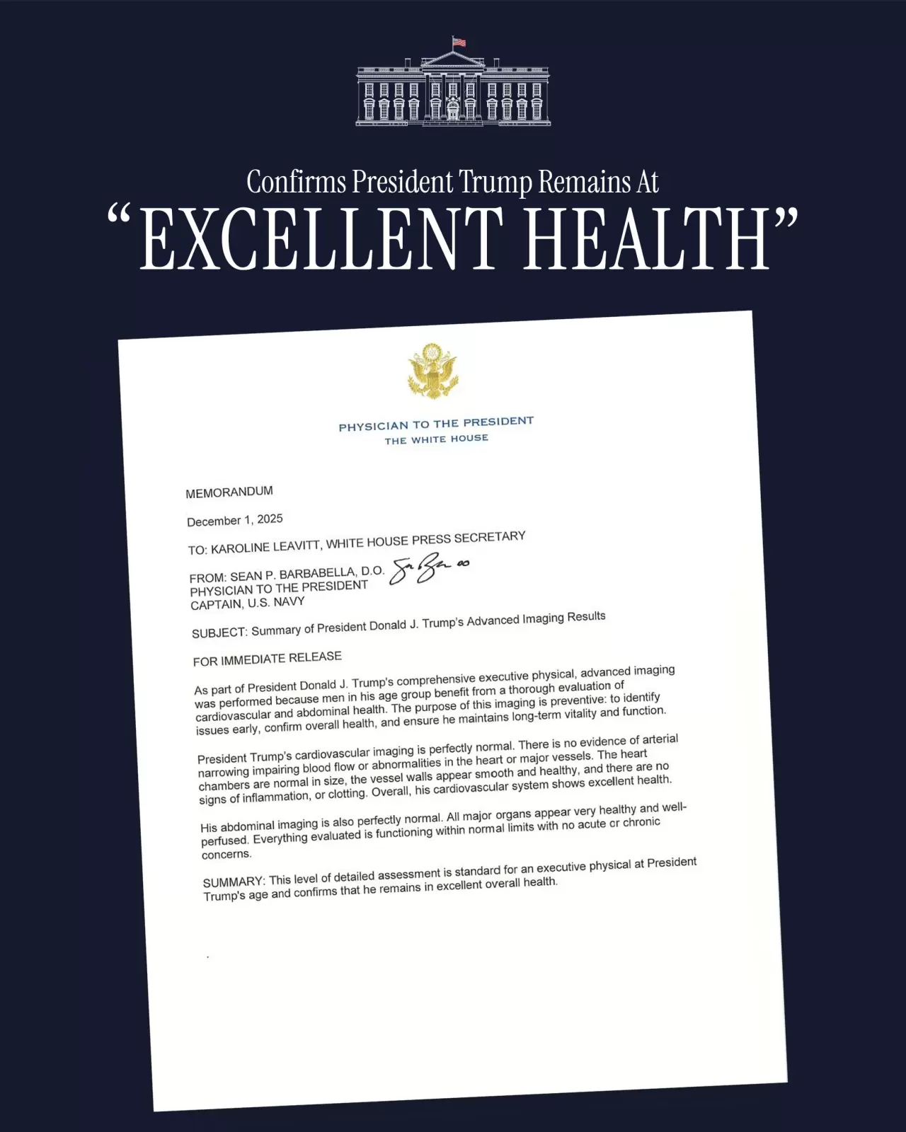 Trump’ın kardiyovasküler sisteminin son derece sağlıklı olduğu vurgulandı.