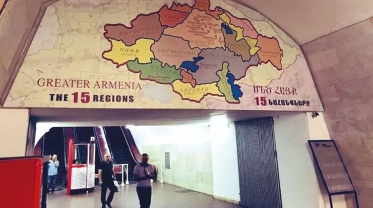 SABAH’ın haberine göre, başkent Erivan'da bulunan metro istasyonunda, Türkiye topraklarını da içine alan sözde büyük Ermenistan haritası, dev bir led ekranda sergilenmişti.