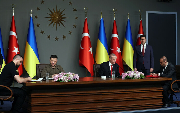 Cumhurbaşkanı Recep Tayyip Erdoğan ve mevkidaşı Zelenski başkanlığındaki baş başa ve heyetler arası görüşmelerin ardından Cumhurbaşkanlığı Vahdettin Köşkü’nde iki ülke arasındaki mutabakatların imza töreni gerçekleştirildi.