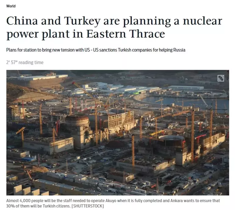 Türkiye'nin Çin ile nükleer enerji konusunda yakınlaşması Yunan basınında jet hızında manşet oldu. Ankara-Pekin yakınlaşmasının Türkiye-ABD ilişkilerini etkileyeceğini öne süren Kathimerini, bu yakınlaşmanın F-16'ların modernizasyonunu etkileyeceğini bildirdi. Türkiye'nin ilk nükleer santralini Rusya ile Mersin'de ortak inşa ettiğini hatırlatan gazete Türkiye'nin 'Oyun kurucu' rolünü üstendiğini bildirdi ve Ankara'nın Sinop ilinde kurulması beklenen yeni nükleer santral için Güney Kore ile görüştüğünü yazdı.