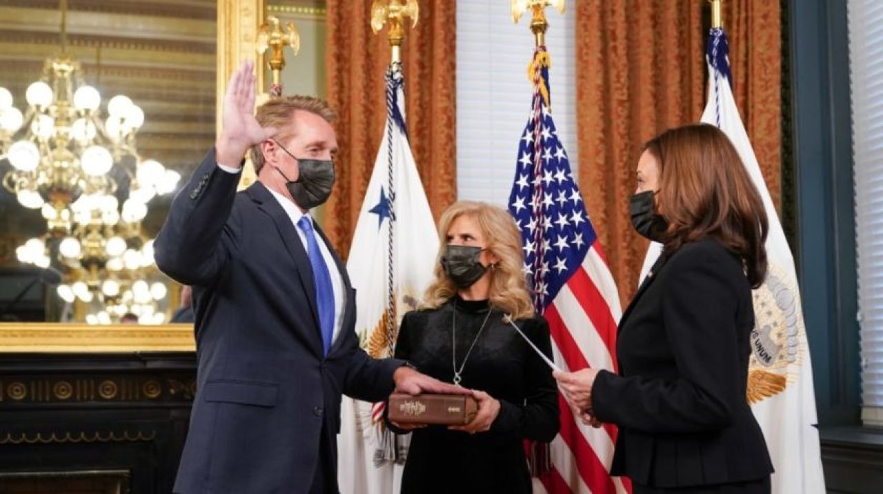 ABD Başkanı Joe Biden tarafından ABD'nin Ankara Büyükelçiliğine aday gösterilen ve adaylığı ekim ayında Senato'da onaylanan Flake, bugün ABD Başkan Yardımcısı Kamala Harris'in huzurunda yemin etti.