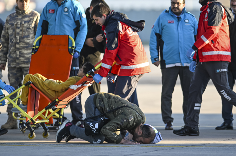 Uçaktan inen bir Filistinlinin Etimesgut Havaalanı'nın pistine; secde edip öpüp şükretmesi görenleri duygulandırdı.