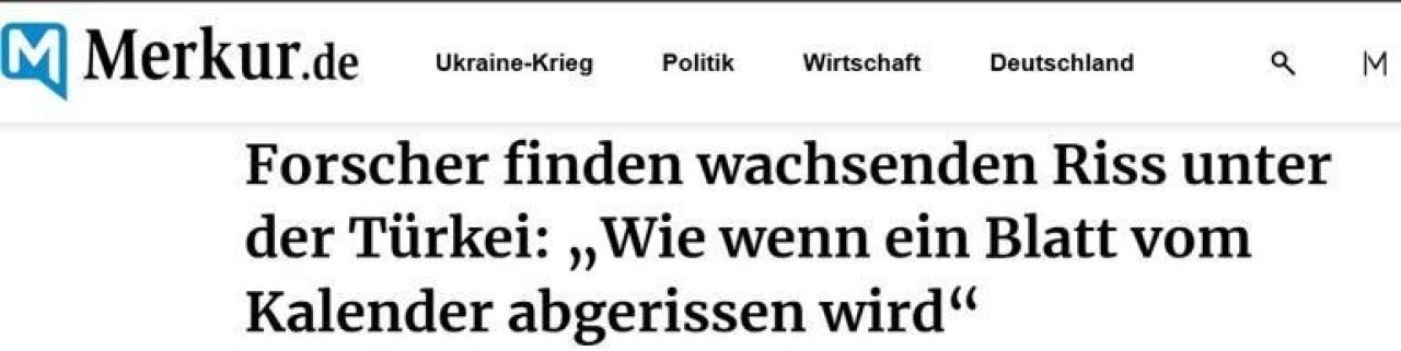 Almanya merkezli merkur.de'nin haberine göre bilim insanları Türkiye'nin altında büyüyen bir yarık keşfetti. Haberde bu bulgunun, dünyanın derinliklerinde meydana gelen jeolojik süreçlerin daha iyi anlaşılmasına katkıda bulunabileceği belirtildi.