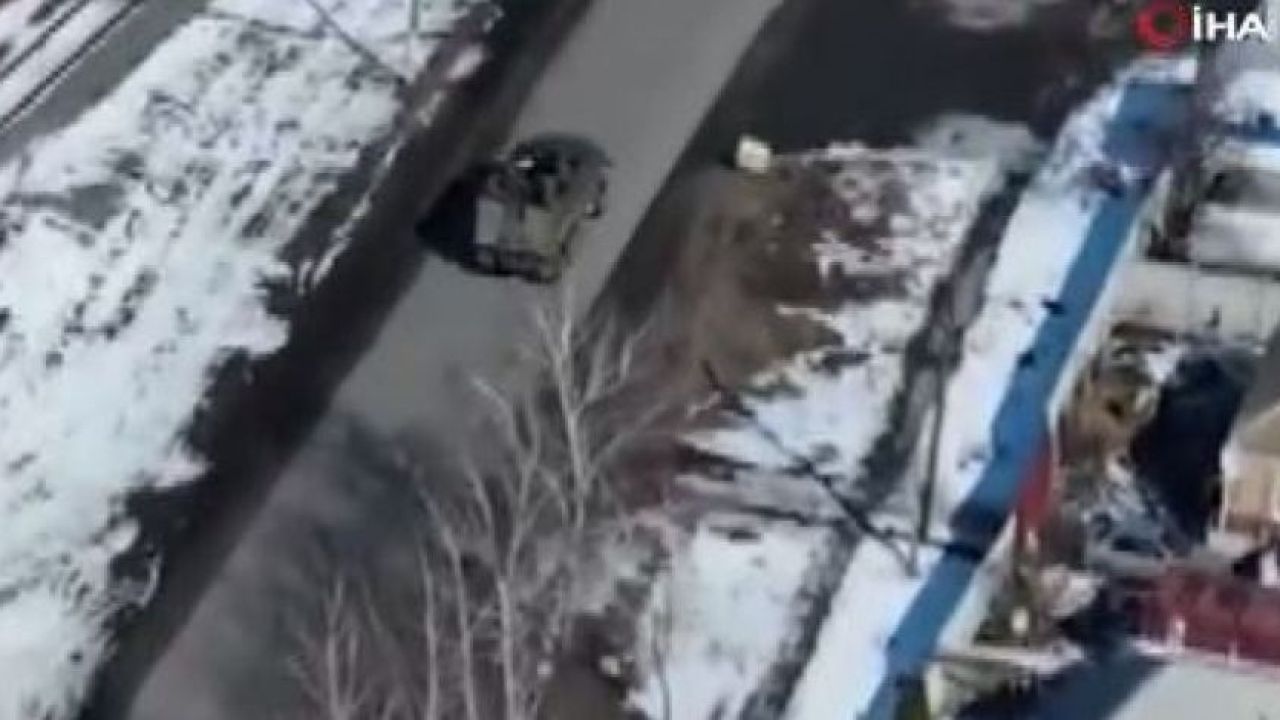 Ukrayna ordusu, Rus askerlerini taşıyan araca yapılan saldırının havadan ve karadan görüntülerini yayınladı.