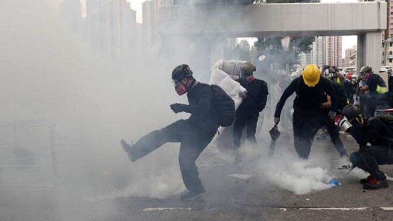 Daha önce yetkililer tarafından izin verilmeyeceği açıklanan bugünkü gösteride, yine binlerce Hong Konglu bir araya geldi. Polisin kalabalığı dağıtmak için göz yaşartıcı bomba ve plastik mermi kullandığı görüldü.