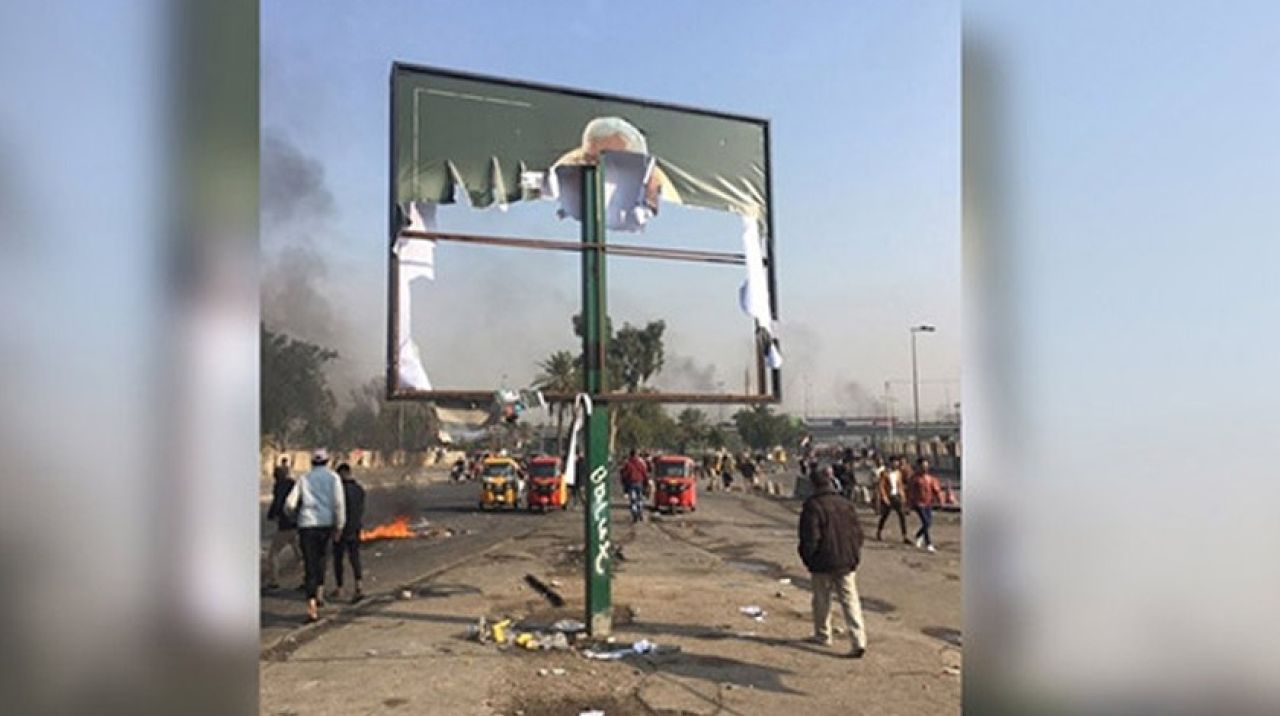 Irak'ın başkenti Bağdat'ta hükümet karşıtı göstericiler, ABD tarafından öldürülen İranlı Komutan Kasım Süleymani ve Haşdi Şabi Başkanı Yardımcısı Ebu Mehdi Mühendis'in resimlerinin bulunduğu afişleri yaktı.
