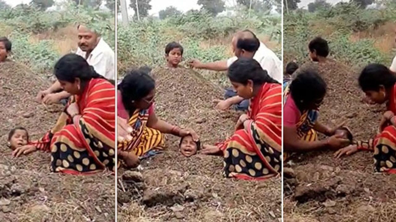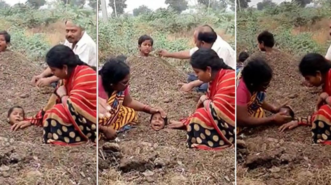 Hindistan’da anne ve babaları tarafından boyunlarına kadar toprağa gömülen fiziksel engelli çocukların görüntüsü büyük tepki çekti.