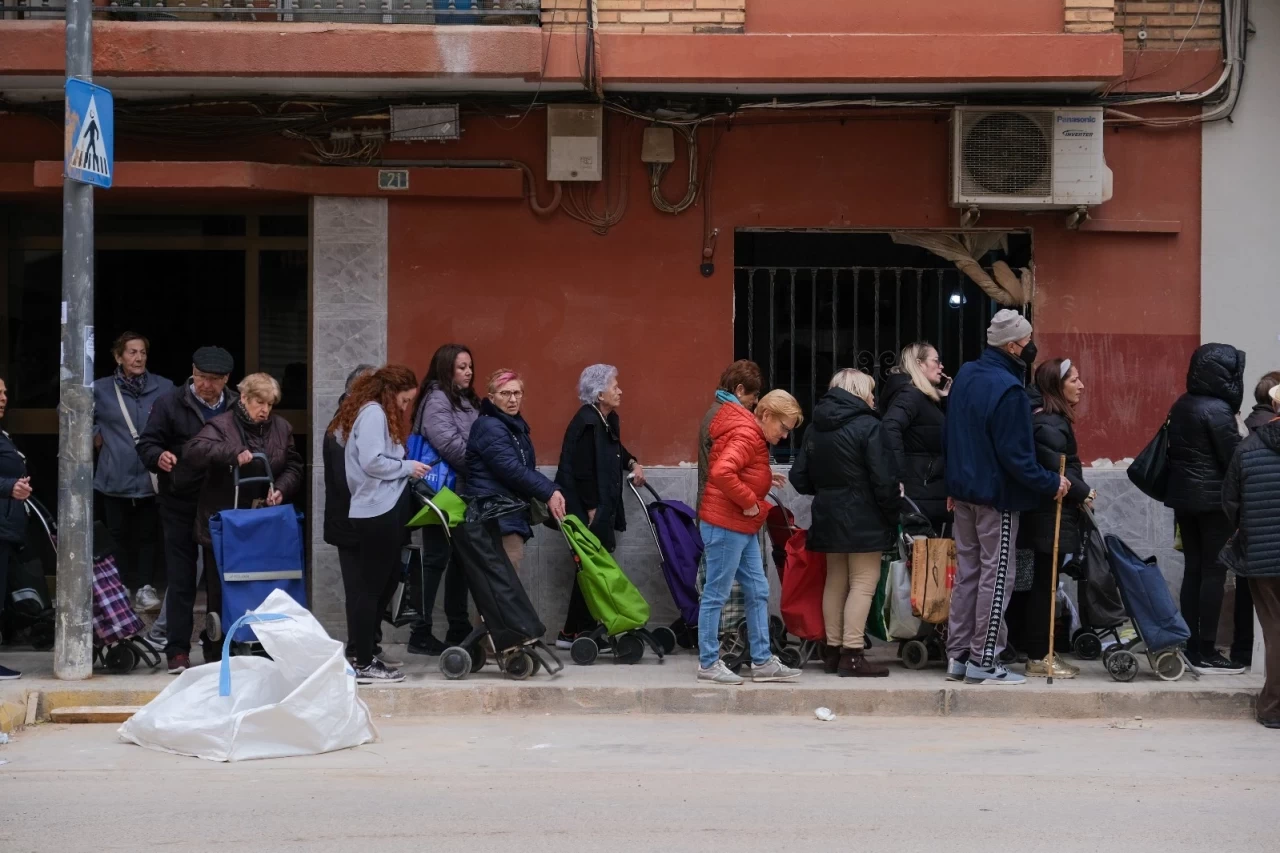 Sel felaketinden etkilenen Valensiya sakinleri, gıda ve diğer temel ihtiyaçlarını karşılamak için marketler önünde uzun kuyruklar oluşturuyor. Toplumun dayanışması, felaket sonrası toparlanma sürecinde önemli bir role sahip.