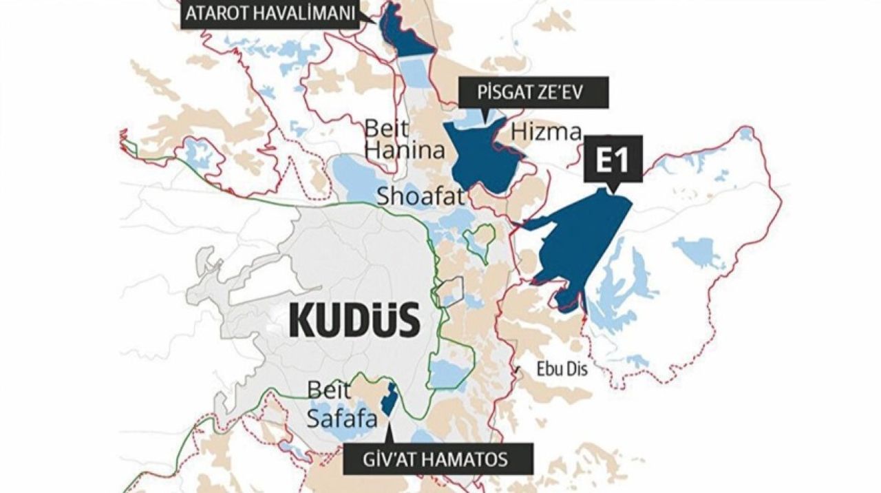 Habere göre terör devleti, Doğu Kudüs sınırında bulunan E1 bölgesinde 3 bin konutluk projeyi görüşmek üzere bu hafta içinde resmî temaslara başlama kararı aldı. Planlanan projenin işgal altındaki Batı Şeria'yı olduğu gibi ikiye böleceği belirtilen haberde, bu yolla iki devletli çözüm planına giden yolun tamamen kapatılacağı ve bağımsız bir Filistin devletinin kurulmasının imkânsız hâle getirileceği vurgulandı.