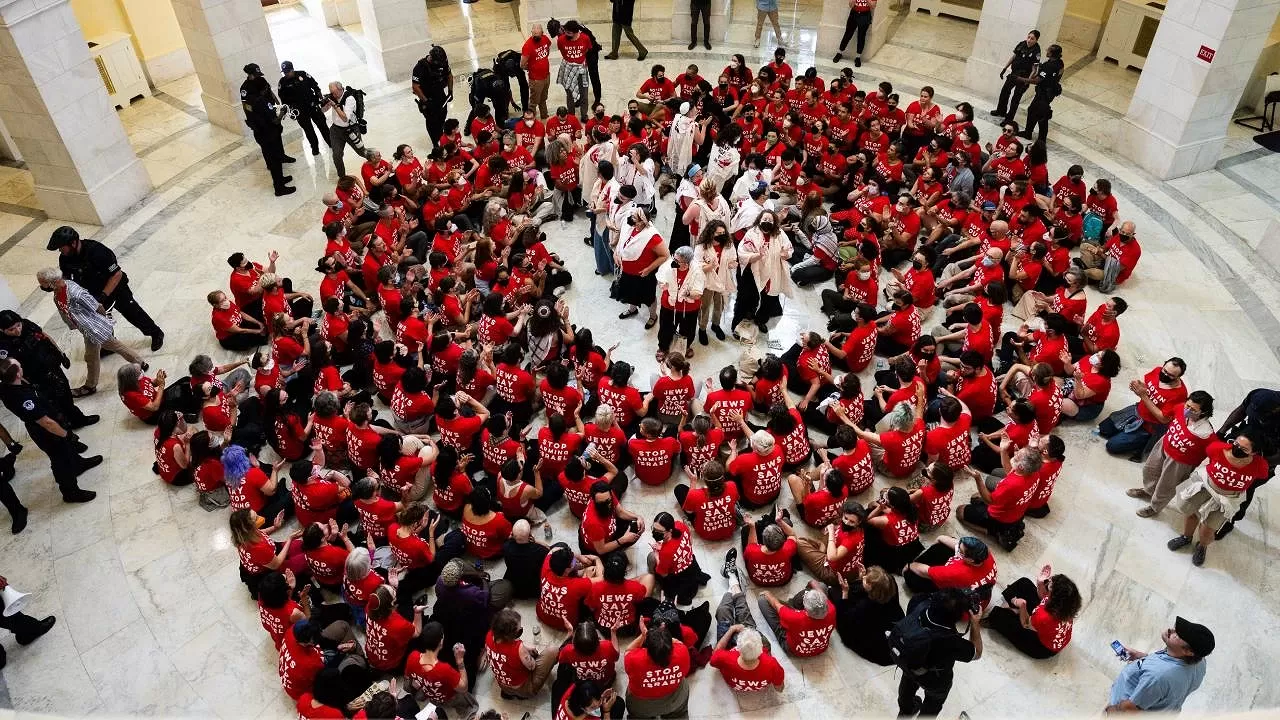 ABD Kongre binasında bir araya gelen Yahudi aktivistler, Netanyahu'yu ve İsrail yönetiminin Gazze'deki saldırılarını protesto etti.