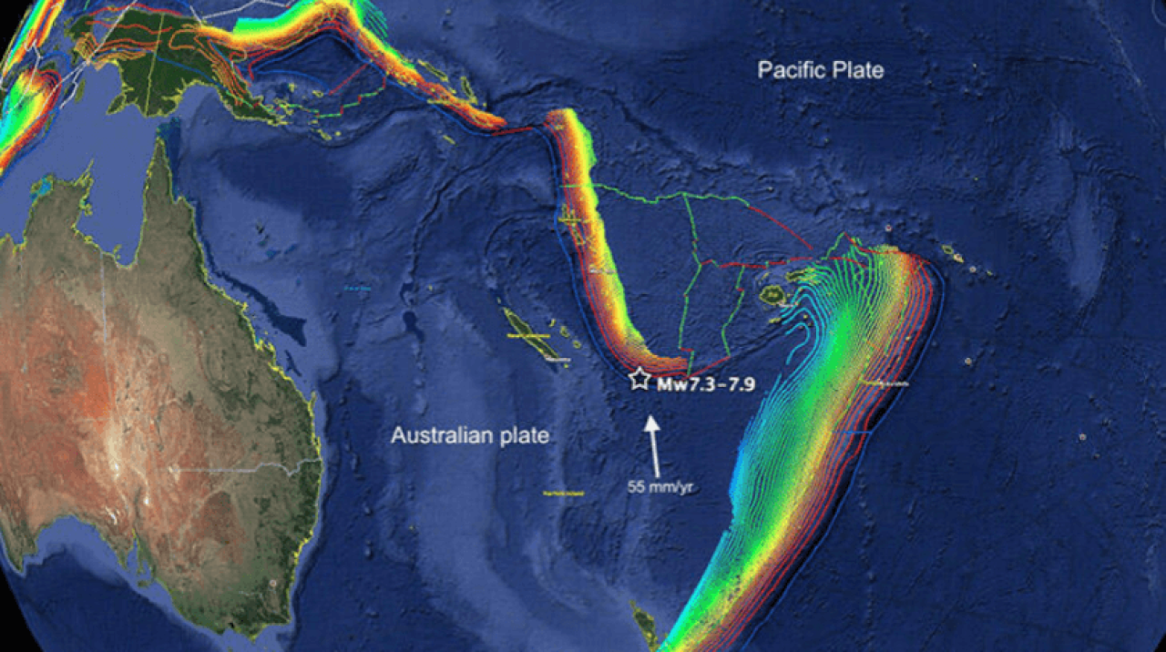 Avrupa Akdeniz Sismoloji Merkezi (EMSC) ise depremin büyüklüğünü 7.6 olarak duyurdu. EMSC, depremin merkez üssünün Yeni Kaledonya'nın 401 km doğusunda ve 2 km derinlikte olduğunu aktardı.
