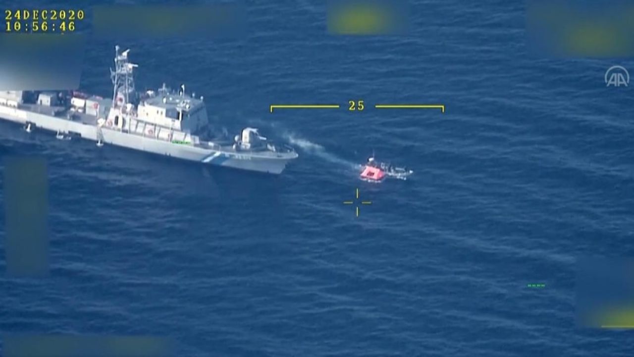 Deniz Kuvvetleri Komutanlığı tarafından İHA ile Ege Denizi'nde icra edilen keşif ve gözetleme faaliyetleri sırasında Yunan sahil güvenlik botlarının düzensiz göçmenlere yönelik insanlık dışı muamelesi kayıt altına alındı.