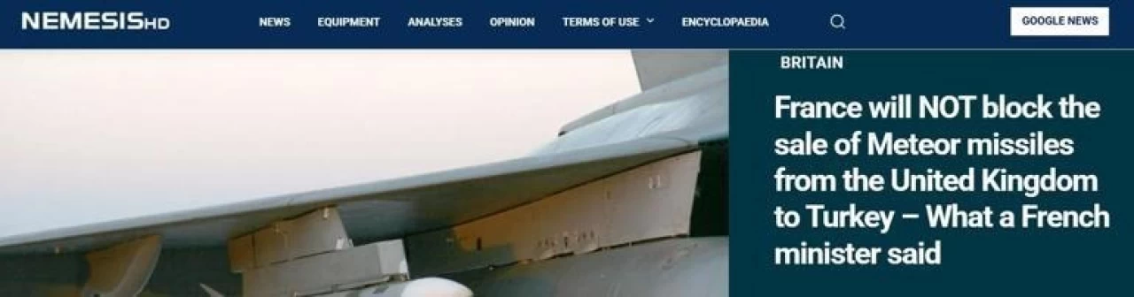 Yunanistan haber sitesi Nemesis'in haberine göre Fransa, İngiltere'nin Türkiye'ye uzun menzilli METEOR havadan havaya füzeleri satma olasılığına karşı çıkmayacağını açıkça belirtti. Bu durum, Yunanistan'ın endişelerine rağmen değişmeyecek. Fransa Silahlı Kuvvetler Bakanı Sébastien Lecornux, Fransız Parlamentosu'nda yapılan bir oturumda, milletvekili Marie Récalde'in sorusuna yanıt olarak, Paris'in İngiliz silah ihracatı üzerinde kontrolü olmadığını ve bu anlaşmaya müdahale etmeyi planlamadığını söylemesiyle ortaya çıktı. Habere göre Bakan Lecornux, "Fransa bu sürecin bir parçası değil. (...) İngiliz silah ihracatı üzerinde kontrolümüz yok." diyen Lecornu, konunun Yunan kamuoyunda yarattığı endişeyi de kabul etti."