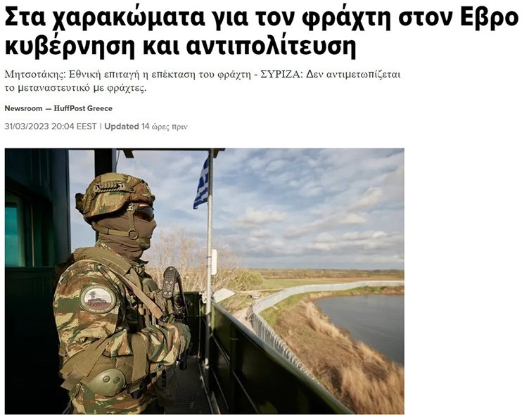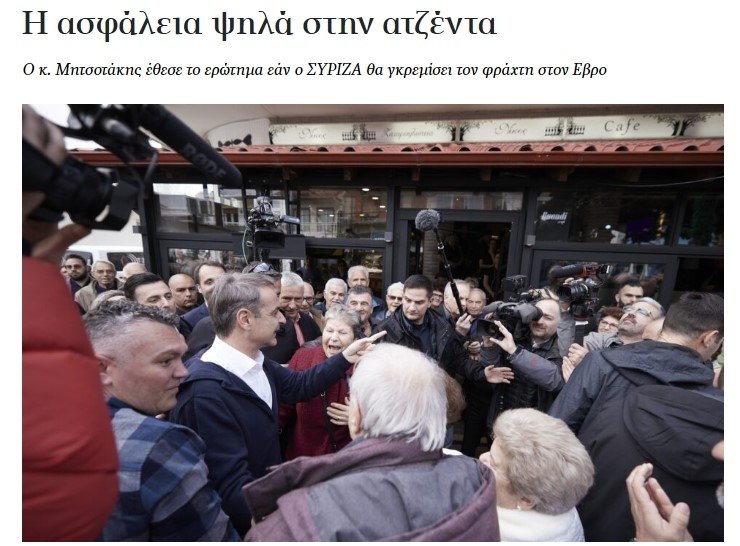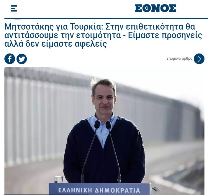 et partisi SYRIZA'nın lideri Aleksis Çipras'ın projeye şiddetle karşı çıktığını belirten gazete, Miçotakis'in bunu ulusal bir mesele olduğunda ısrar ettiğini altını çizdi. Miçotakis'in Türkiye'ye "göçmen sorununu bize karşı kullanmaya son verin" çağrısında bulunduğunu söyleyen gazete, duvarın gerekliliğine vurgu yaptı.
