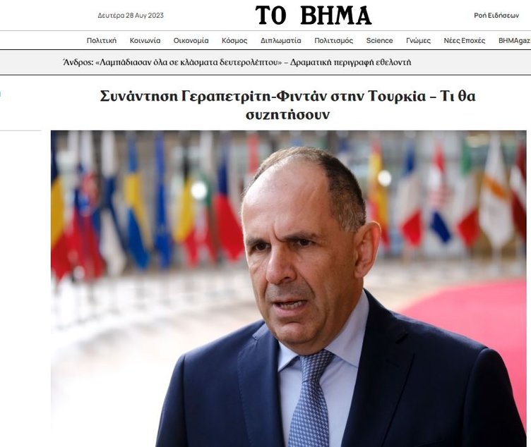 To Vima 'Gerapetritis' ve Fidan neyi konuşacak?' başlığı ile okuyucularının karşısına çıktı. Önümüzdeki iki ay içerisinde gerçekleştirilecek üst düzey Türki-Yunan temasları için zemin hazırlanacağı