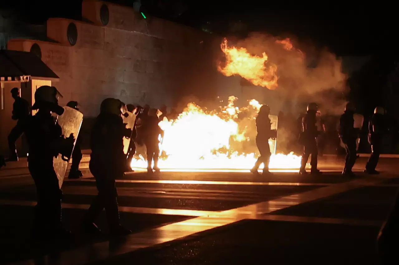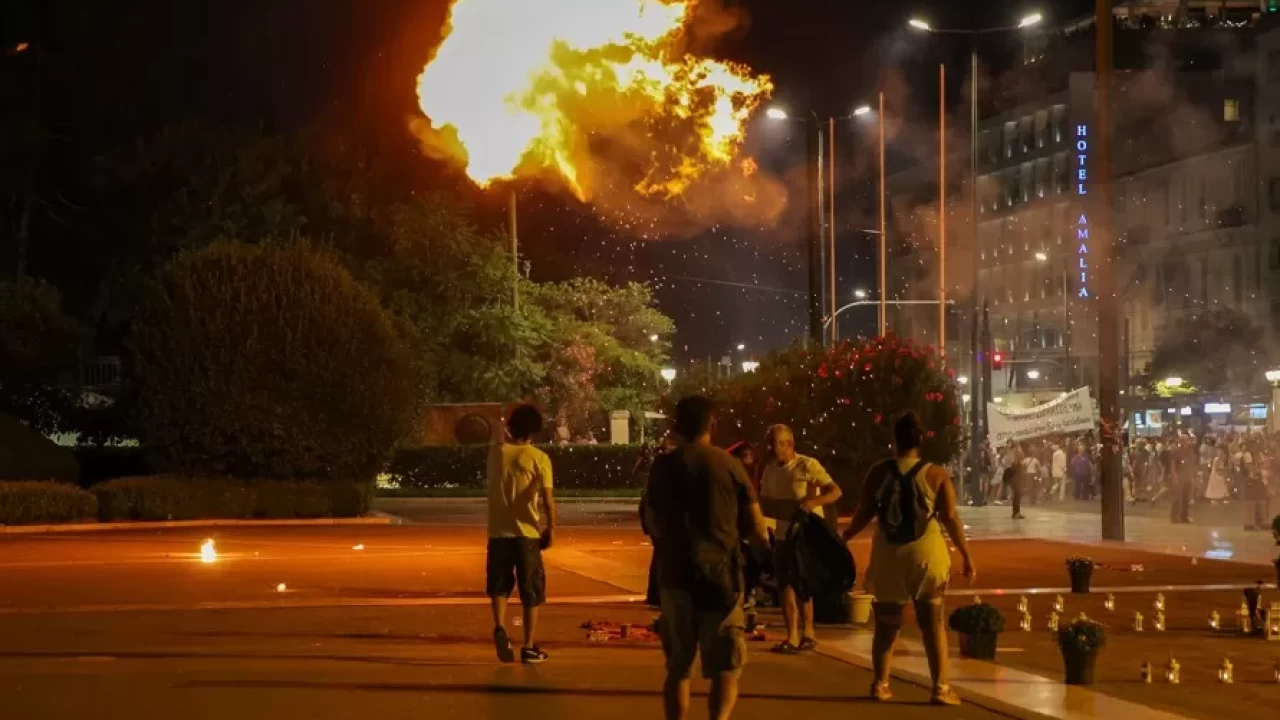 Atina'da Parlamento binası önünde toplanan kalabalık, sorumluların bulunması ve adaletin sağlanması talebiyle gösteri gerçekleştirdi.