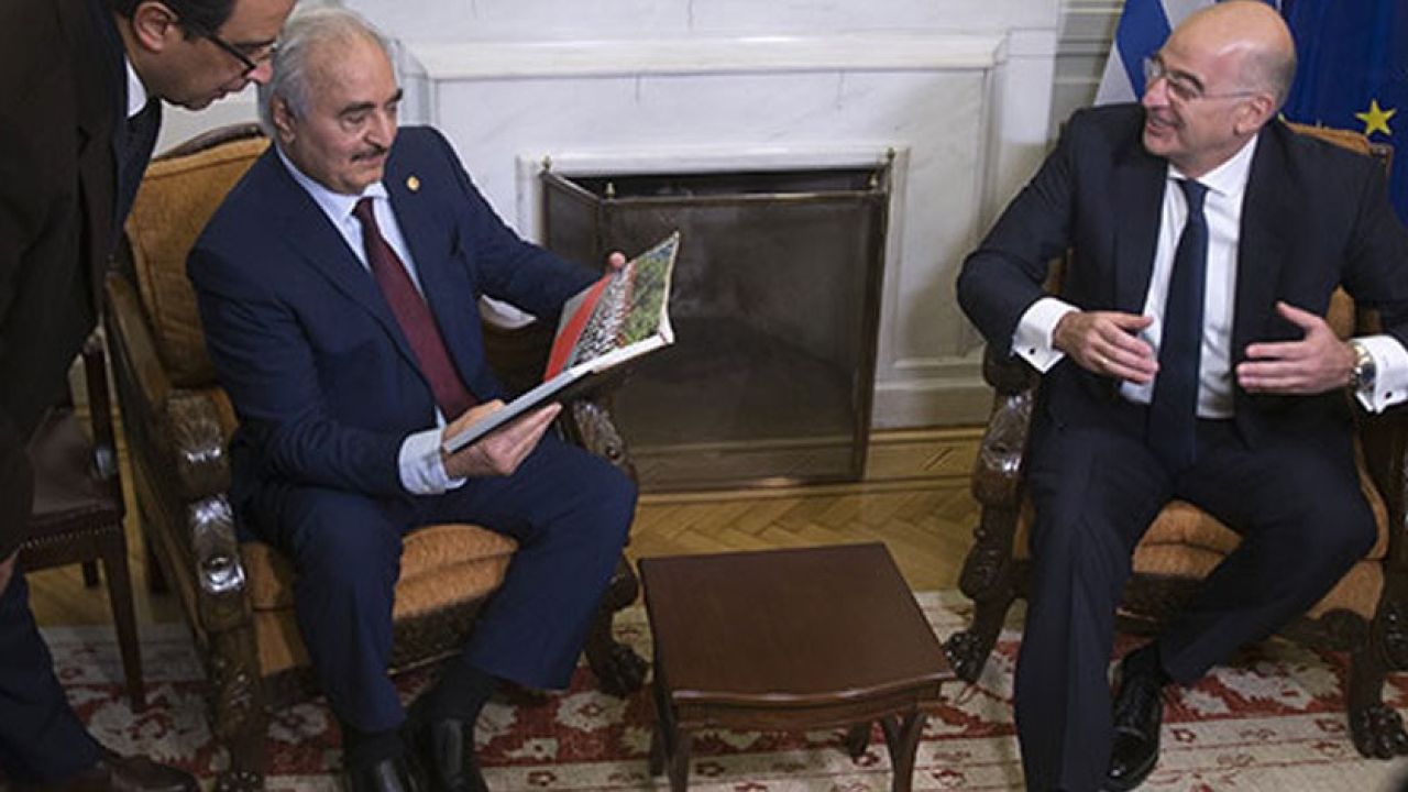 Darbeci Hafter, Atina'da Yunanistan Dışişleri Bakanı Nikos Dendias ile görüştü. Yunan Bakan Dendias, darbeci Hafter'i Bakanlık önünde bizzat karşıladı.